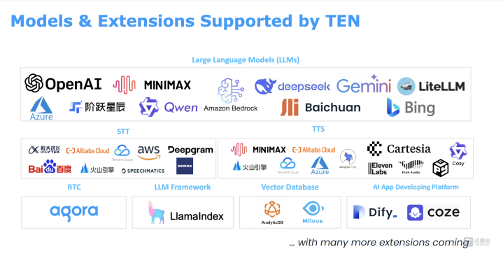 目前,声网和Agorad都在致力于打造“人工智能语音代理的关键基础设施”(WeareaCriticalInfraforAIVoiceAgents),该公司提供的TEN(TransformativeExtensionsNetwork)服务已经在DeepSeek、阿里通义Qwen、阶跃星辰Step、MiniMax、AmazonBedrock、百度、科大讯飞等AI企业和产品当中。